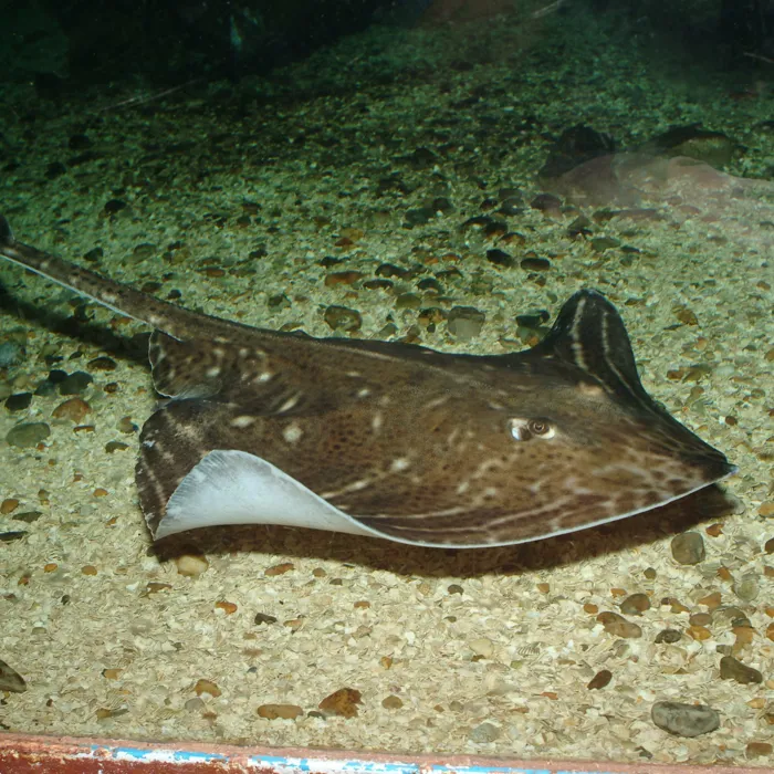 Did you know that rays are masters of camouflage? They can adapt their coloration to the seabed and thus merge with it. With their very flat body, they hide from predators on the sea floor. However, if they feel threatened, they can also strike with their tail. Some species therefore have additional poisonous spines on their tail.