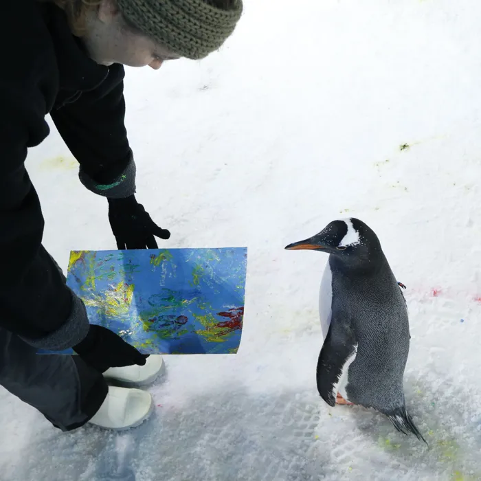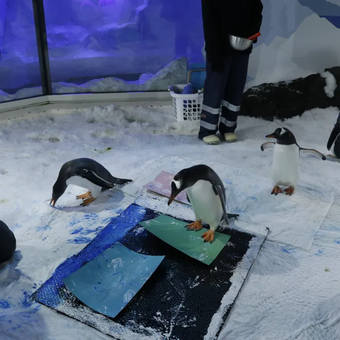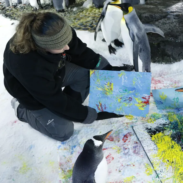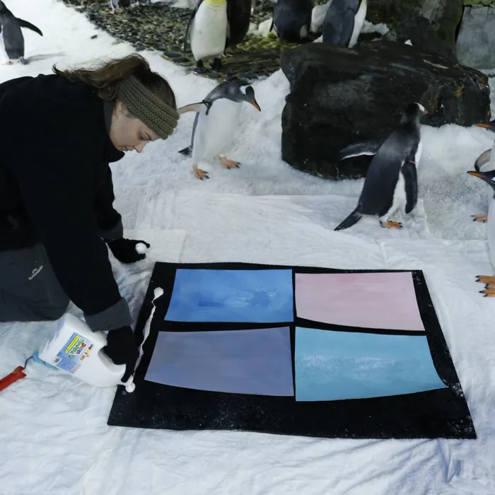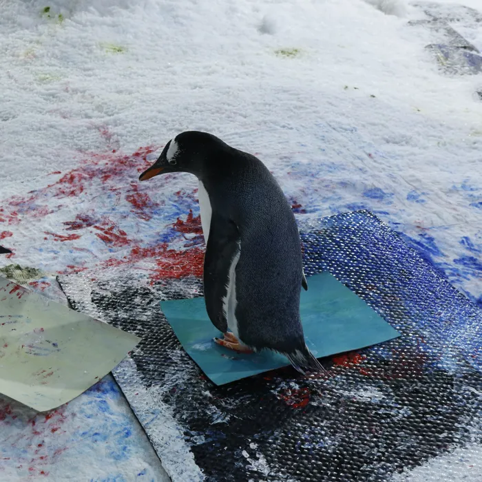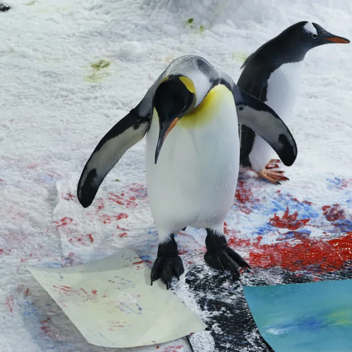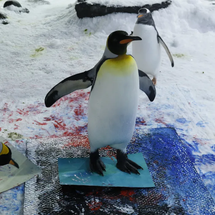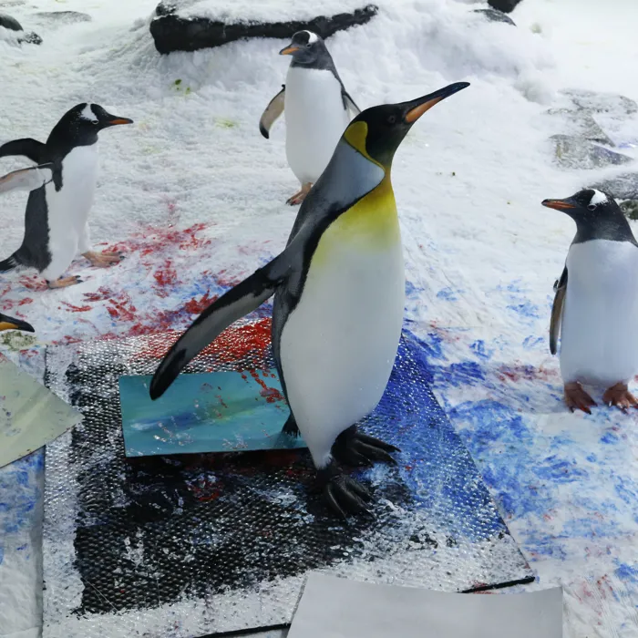 Watch how the King and Gentoo penguins during enriching painting sessions to create their unique piece of artwork for conservation purposes.