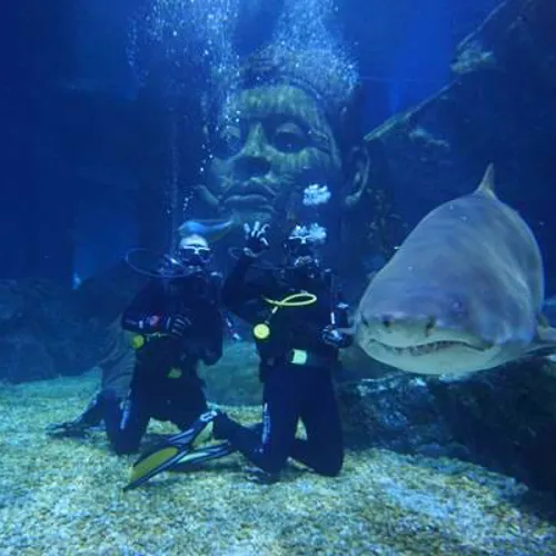 Get an adrenaline rush as you delve deep into the world down below. Our experienced trainers will bring you face-to-face with sand tiger sharks, blacktip reef sharks, leopard sharks, round ribbontail rays, eagle rays, and other exotic aquatic species that lie waiting to meet you.