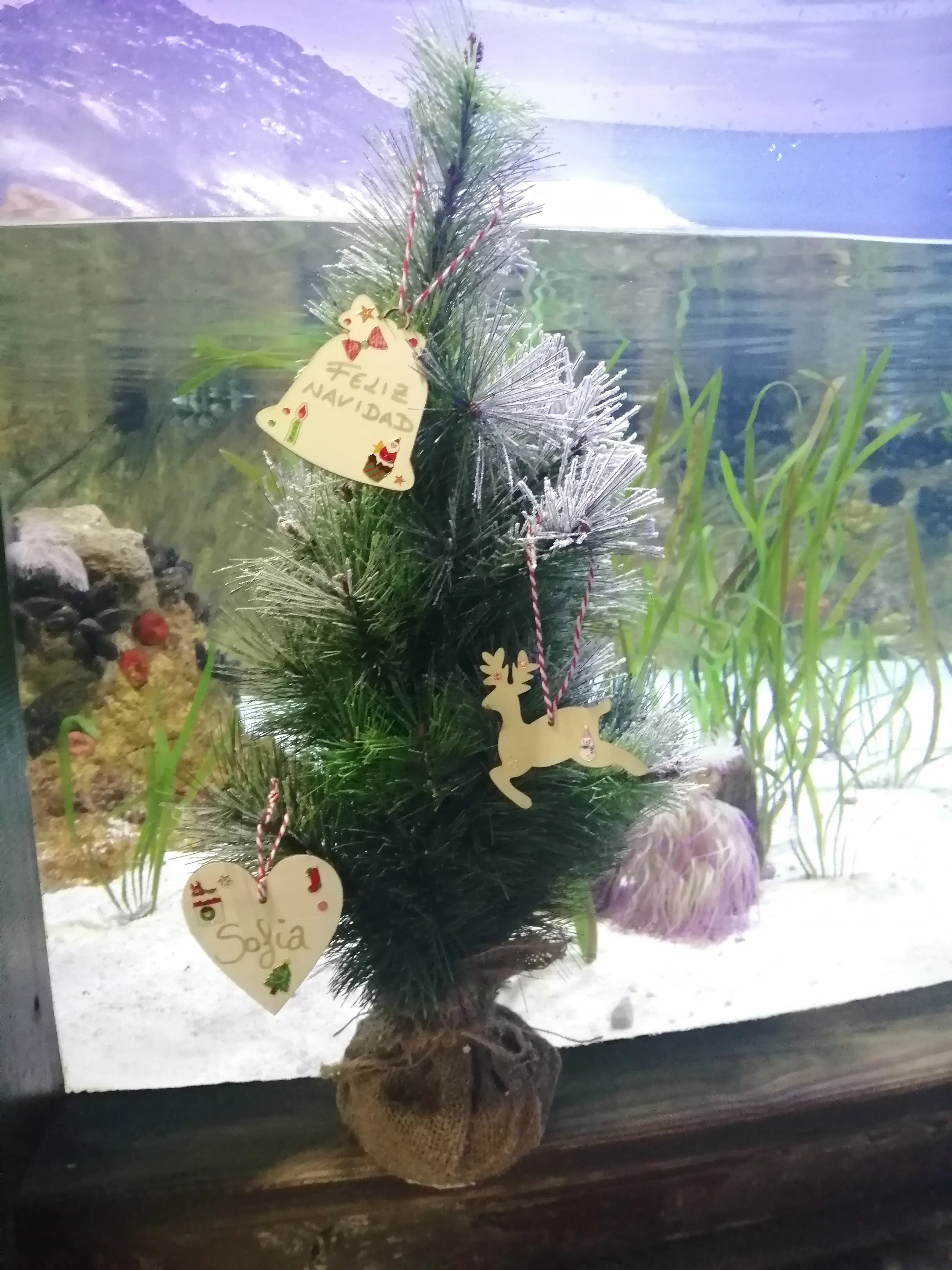 With their imposing size and vibrant colors, the Pacus become the perfect guardians of this small Christmas display beneath the waves.