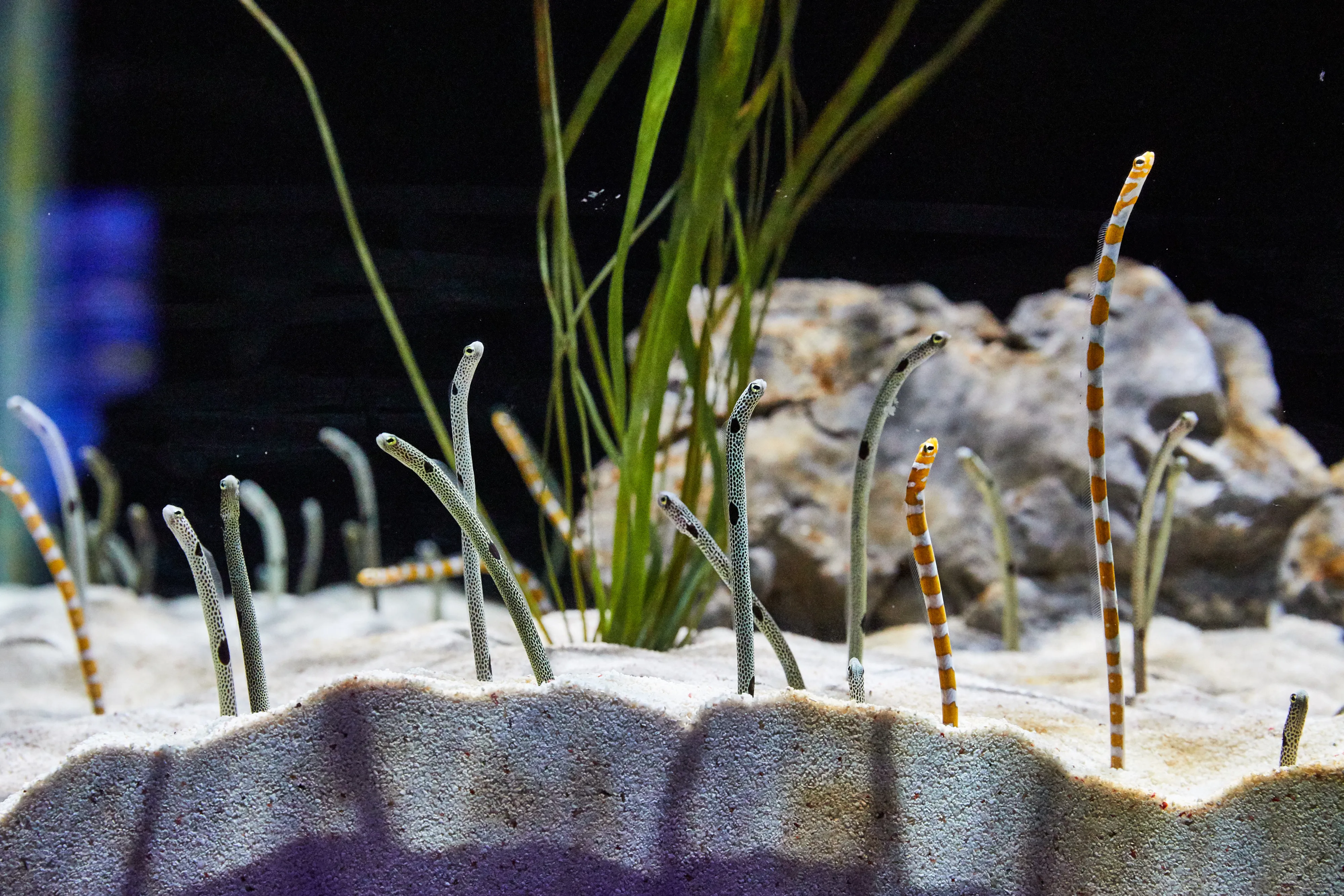 지하 3층에 위치한 스플렌디드 가든일을 만나보세요. 다른 장어 친구들에 비해 몸집도 가늘고 작지만 모랫바닥에 파고들어 모래구멍에 넣으며 생활하는 가든일입니다.