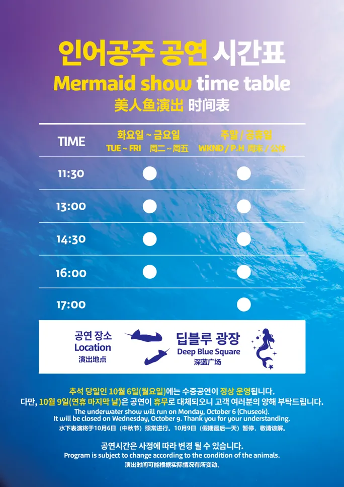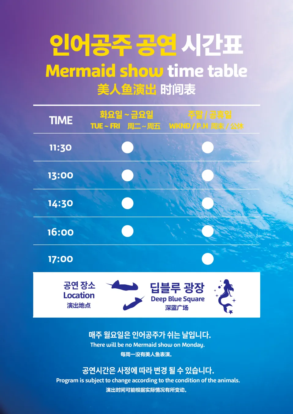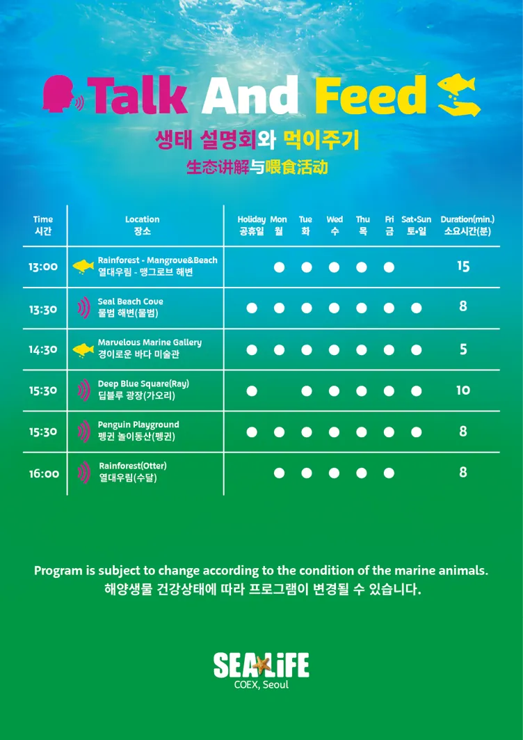 Remember to check the performance information in advance and enjoy all the programs offered by SEA LIFE COEX, Seoul Aquarium!