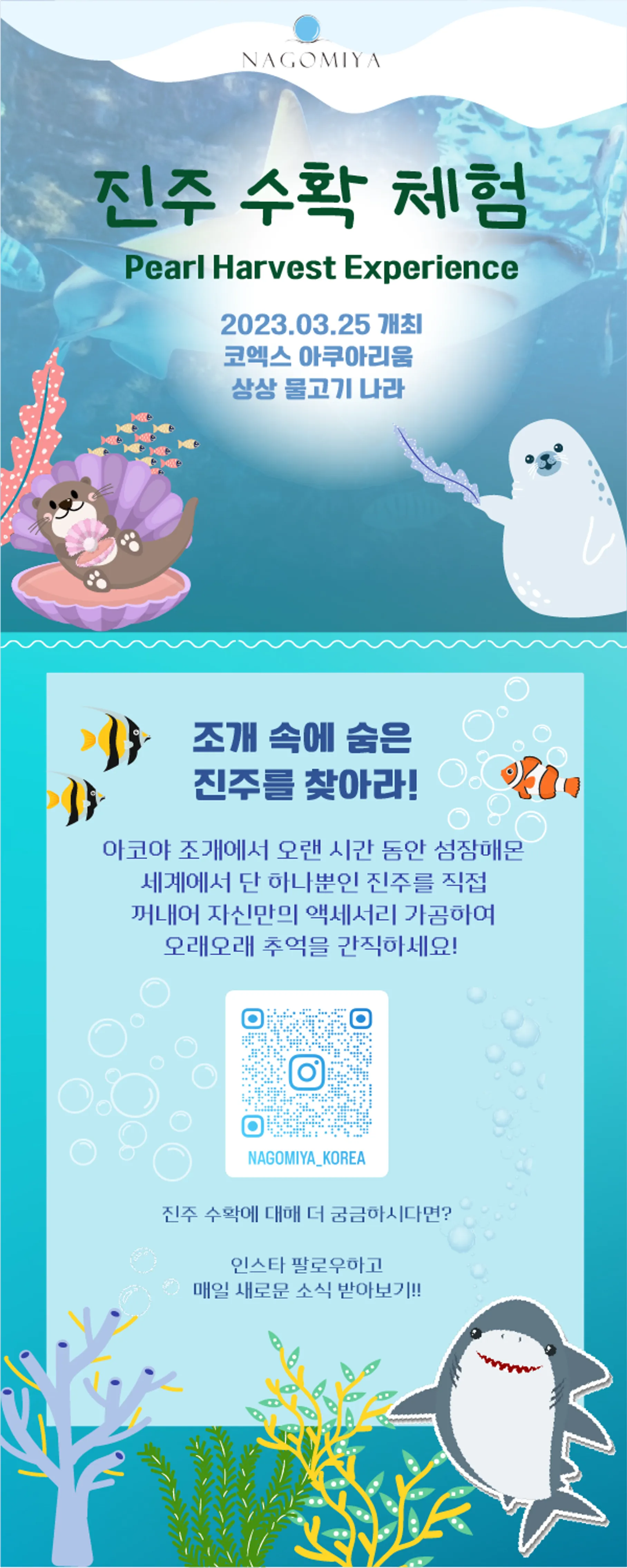 아코야 조개에서 오랜 시간 동안 성장해온 세계에서 단 하나뿐인 진주를 직접 꺼내어 자신만의 액세서리 가공하여 오래오래 추억을 간직하세요!