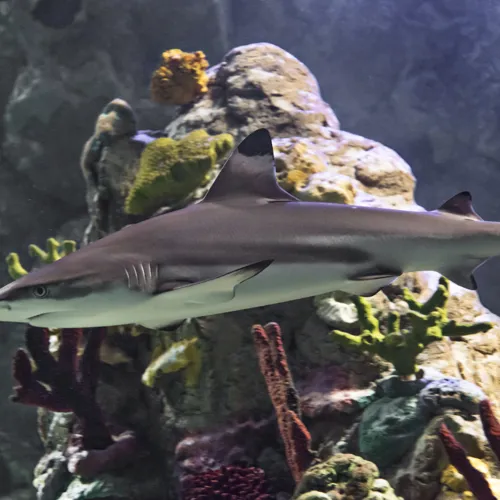 See if you can find Nemo in the clownfish cave, a column tank with clownfish and other tropical fish. Look out for the anemones, sedentary sea creatures that look like flowers. Visit the dinosaur dive, a desert-like cave, to see a giant pacific octopus. You can also view these breathtaking creatures at the Shipwrecked Exhibit, where Carmen, the famous octopus, will say hi, and if you get lucky, you might see her folding her tentacles and camouflaging herself to search for food. Other sea life animals to explore are guitarfish, piranha, caiman, and a reticulated albino python.