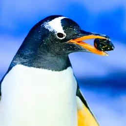 Gentoos are the fastest swimming species of penguin, clocking up a maximum speed of around 22mph underwater. Their wings act as natural flippers and their ability to change the angle of their wings whilst swimming helps with this. They soar through the water like a torpedo to catch their food in the wild including fish, squid and shrimp.