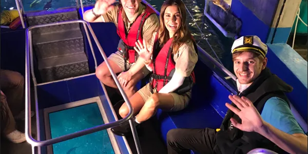 Enjoy an exclusive perspective of our Night on the Reef exhibit as you’re skippered above the water.