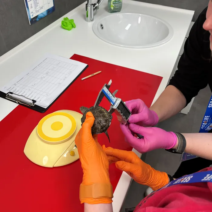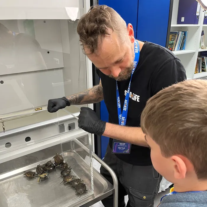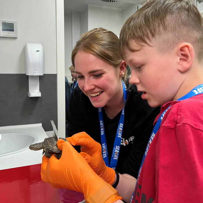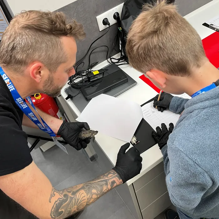 Am 23.Mai war es soweit. Unsere jungen Tierforscher*innen haben haben sich für ihr erstes Treffen zusammengefunden. Passend zum Weltschildkrötentag hat das frisch ernannte Team unsere europäischen Sumpfschildkröten gewogen, vermessen und fotografiert. Zudem durfte jedes der Kinder eine Patenschaft für eines der Tiere übernehmen. Die europäischen Sumpfschildkröten, von den Mitarbeiter*innen auch liebevoll "Emys" genannt, werden im SEA LIFE Oberhausen großgezogen und gepflegt bis sie groß und stark genug sind um ihre Reise in die Natur anzutreten. Gemeinsam mit dem Nabu Rheinland Pfalz und dem SEA LIFE Speyer werden die kleinen Panzertiere dann nämlich in Speyer wieder in ihren einst heimischen Gewässern wieder angesiedelt.