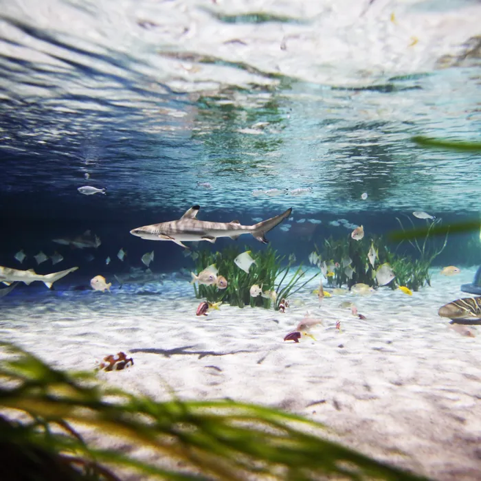 Die jungen Schwarzspitzenriffhaie schwimmen nach ihrer Geburt weg vom Muttertier in flache Gewässer. Besonders die dichten Mangroven bieten den kleinen Haien Schutz vor Fressfeinden.