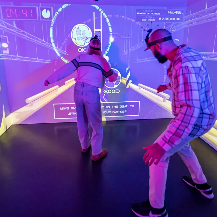 Mach dich bereit für das interaktive Gaming-Erlebnis der Zukunft. In Teams von 2-6 Spieler*innen stellst du dich den unterschiedlichsten Herausforderungen. Egal ob beim Date, zusammen mit Freunden oder als Firmenevent: Meister zusammen mit deinem Team alle Level in einem einzigartigen, neuen Spielerlebnis.