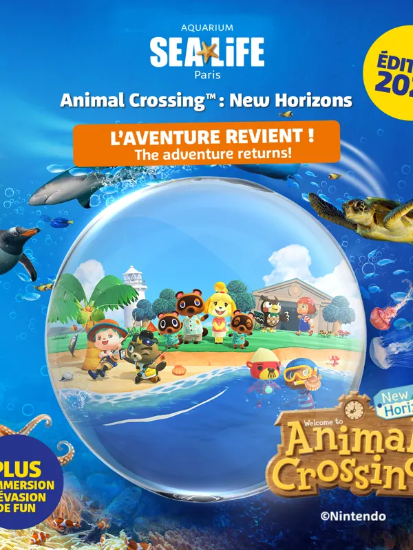 Bonne nouvelle ! Après le succès de l’an dernier, Animal Crossing™: New Horizons fait son grand retour à SEA LIFE Paris, du 18 octobre 2025 au 8 mars 2026.