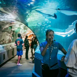 With the Sleep Under the Sea experience, you'll have the opportunity to sleep inside our Ocean Tunnel with sharks and giant rays swimming above you, and participate in a range of great aquarium activities without the daytime crowds.