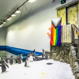 The Sydney Harbour Bridge and city skyline, adorned in rainbow flags, will be positioned in the sub-Antarctic penguin enclosure until 5th March 2023, alongside some other Sydney WorldPride celebratory elements of our current ‘Dating & Mating’ guest experience, showcasing love, breeding and youngster rearing in the animal world.