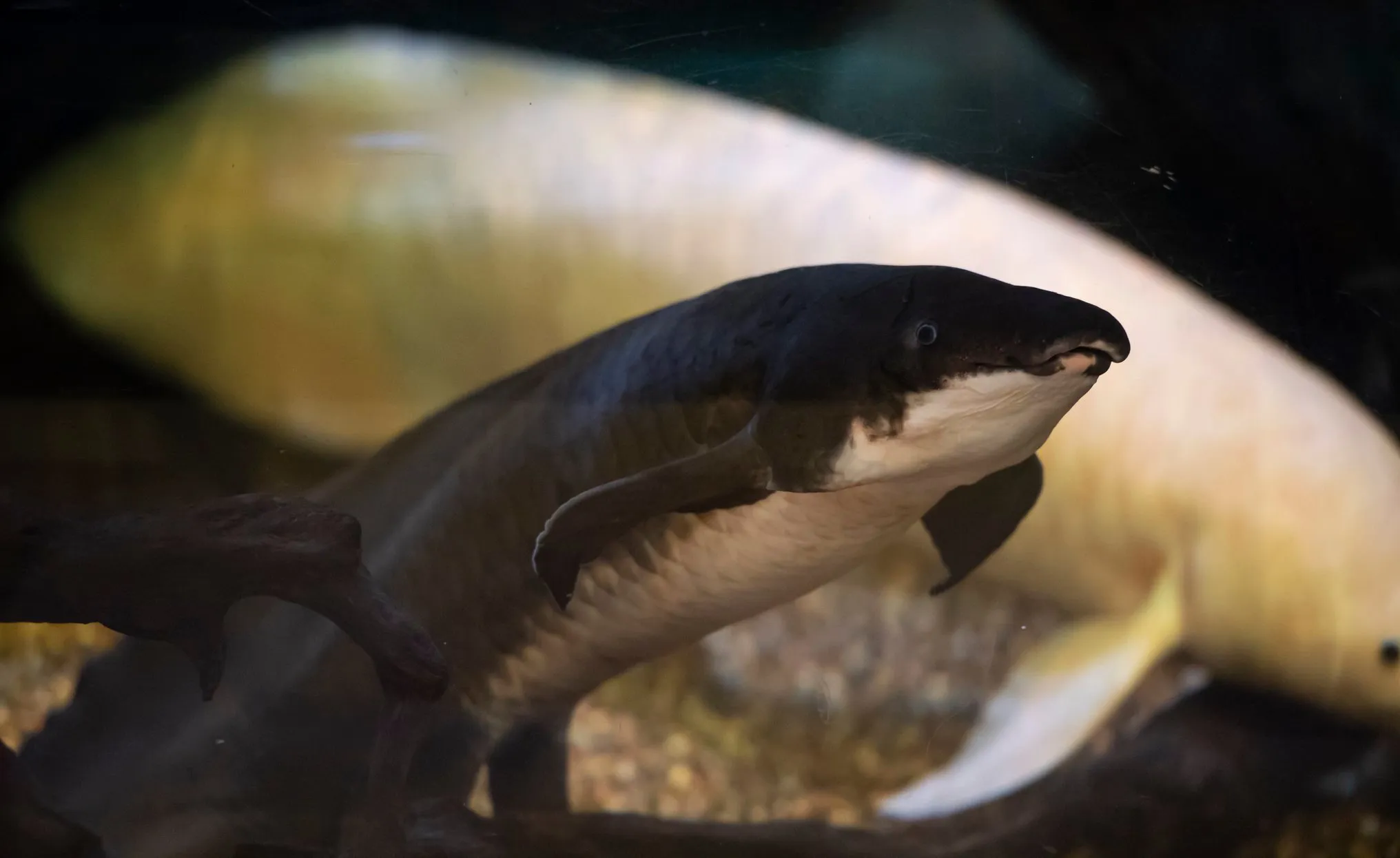 The story of the Lungfish is certainly an interesting fish-tale. It has been described as a ‘living fossil’, with its ancestors dating back to the dinosaurs, well over 100 million years ago. Lungfish are a species of freshwater fish and are best known for retaining primitive characteristics including its ability to breathe air - the only fish species that can - and it does so with its lung! In fact, the lungfish can even wriggle over land and live over the age of 50. Many believe the lungfish is the missing link in the evolutionary chain - which saw fish crawl out of the water to become land-dwelling, backboned animals, like us humans!